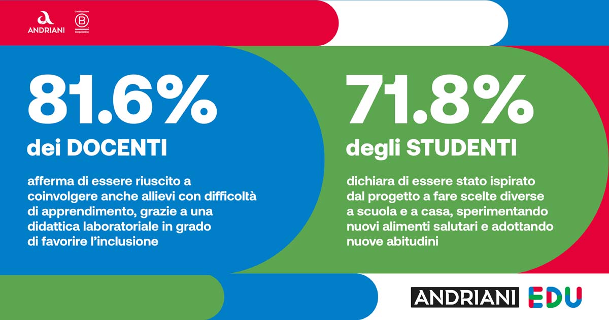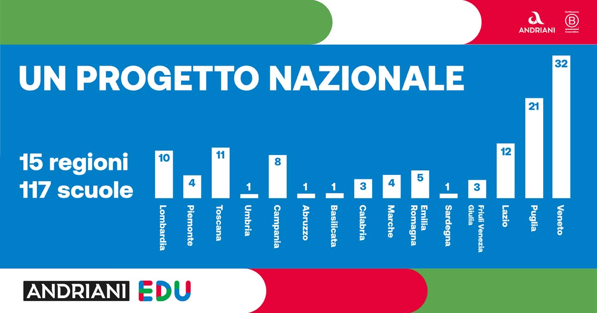 150 ore di formazione accreditate erogate a 200 insegnanti, 4.000 studenti coinvolti in 16 regioni italiane. Sono i numeri di Andriani Educational, progetto nato per favorire l’educazione alla sostenibilità alimentare nelle scuole, la cui comunità di apprendimento è in continua crescita.